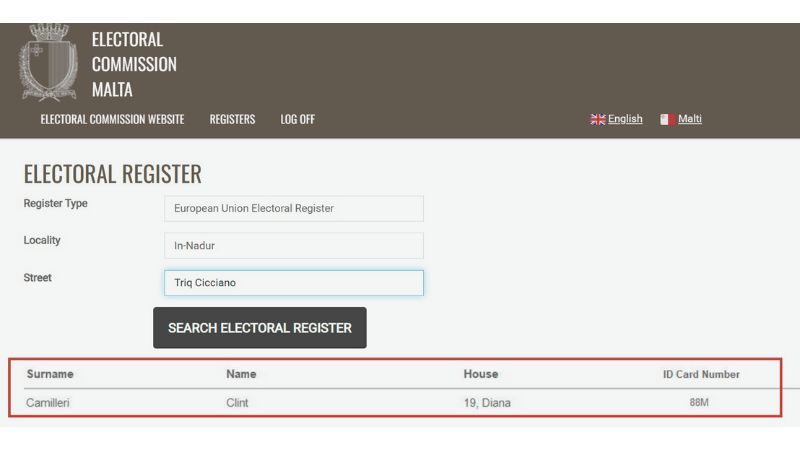 Moreover, Minister Camilleri is registered as residing at the same premises, according to the last electoral register for the MEP elections held in 2024.