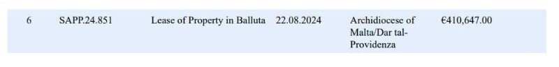 The Archdiocese of Malta has been awarded another significant direct order by the government to lease a property in Balluta for €411,000.