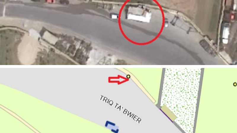 While the new application appears on the Planning Authority’s online map, the existing illegal structure is unmarked, creating the illusion that no unauthorised development exists in the area.