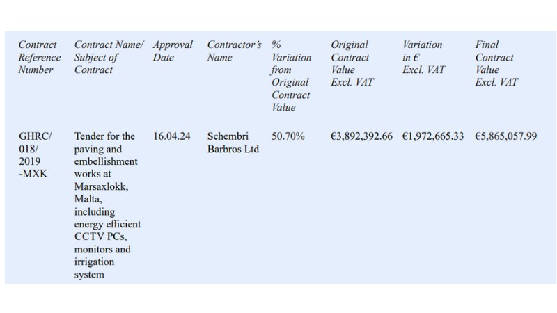 Three years after Prime Minister Robert Abela inaugurated the project, it was revealed that Schembri Barbros Limited was awarded the original contract for approximately €4 million. In the end, the contractor received €6 million.