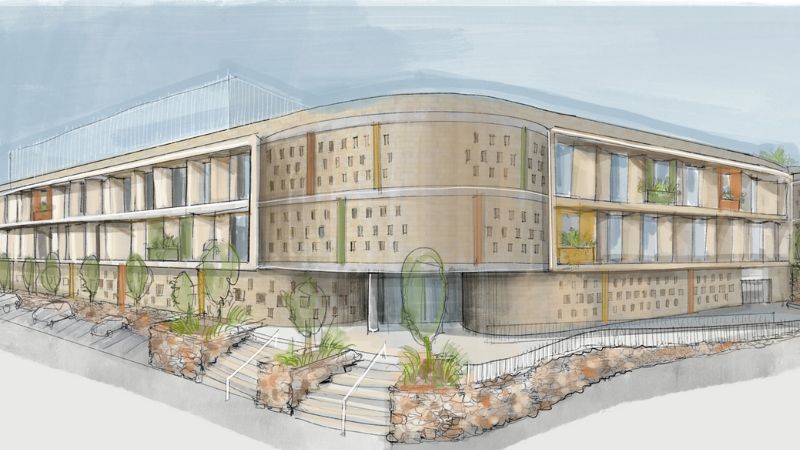 Architectural renderings of the new school were published by the minister as part of a publicity effort aimed at easing parental concerns about their children spending at least three years—likely more, due to expected delays—in a container school.