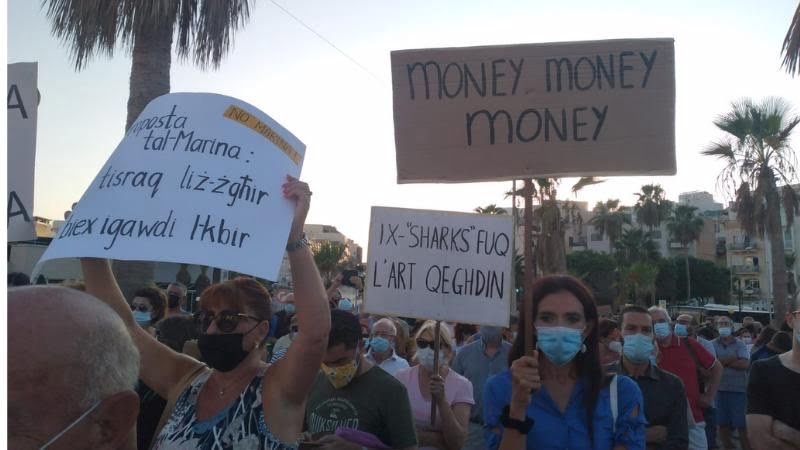 Marsascala marina protest draws hundreds as speakers demand bay is defended from attacks from rich people