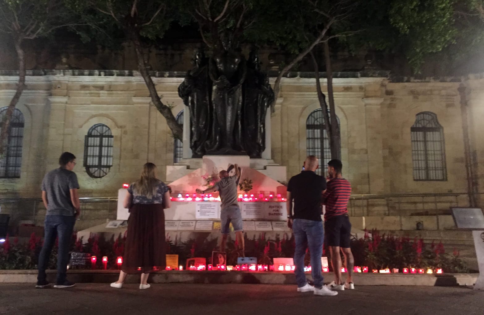 The portrait of journalist Daphne Caruana Galizia, placed at the foot of... View more