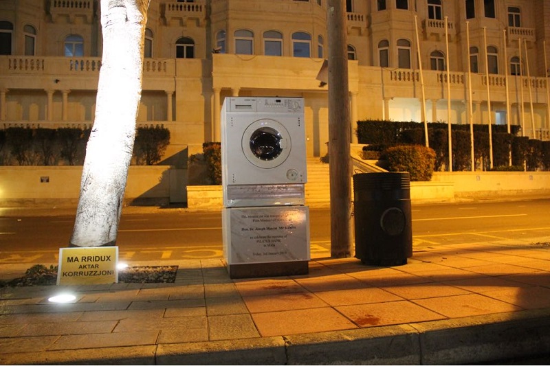 Washing machine placed in front of Pilatus Bank accused of money laundering activities
